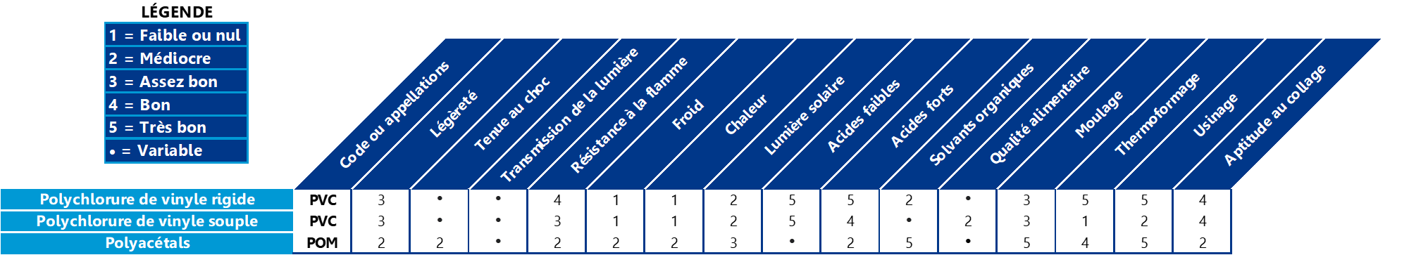 * Fatigue : résistance du matériau sous l'effet d'efforts variables (forces, vibrations...) EPDM MATIÈRE EN PLASTIQUEPVCAbréviation de polychlorure de vinyle. Faculté à rester souple tout en conservant ses propriétés. Bonne résistance : à la flamme, à l'usure, aux acides, aux variations climatiques et aux intempéries... En plus d'être très léger, le PVC est un matériau inaltérable*. Très sollicité au vu de sa capacité d'isolation acoustique et thermique. POMAbréviation de polyoxyméthylène. Grâce à sa structure, le POM offre des bonnes caractéristiques physiques et mécaniques. Bonne résistance : aux chocs (même à basse température), à la fatigue (forces exercées, vibrations, au vent...), aux dissolvants et à l'abrasion... Possède une rigidité et dureté élevées. Ses propriétés en font un bon isolant. * Inaltérable : matériau qui ne change pas de part sa structure, sa composition et sa nature. Découvrez tous nos produitsNos secteursNos réalisations |